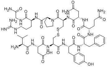 VAL-ASP-CYS-TYR-PHE-GLN-ASN-CYS-PRO-ARG-GLY-NH2 (DISULFIDE BRIDGE: CYS3-CYS8) H-VAL-ASP-CYS-TYR-PHE-GLN-ASN-CYS-PRO-ARG-GLY-NH2VAL-ASP-(ARG8)-VASOPRESSINH-Val-Asp-Cys-Tyr-Phe-Gln-Asn-Cys-Pro-Arg-Gly-NH2 (Disulfide bond) |
