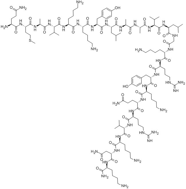 Gln-Met-Ala-Val-Lys-Lys-Tyr-Leu-Ala-Ala-Val-Leu-Gly-Lys-Arg-Tyr-Lys-Gln-Arg-Val-Lys-Asn-Lys-NH2 | H-Gln-Met-Ala-Val-Lys-Lys-Tyr-Leu-Ala-Ala-Val-Leu-Gly-Lys-Arg-Tyr-Lys-Gln-Arg-Val-Lys-Asn-Lys-NH2