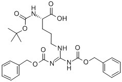 N,N-Bis-(benzyloxycarbonyl)-N-tert-butoxycarbonyl-L-arginine; N-.ALPHA.-BOC-N-.OMEGA.-,N-.OMEGA.''-DI-CBZ-L-ARGININE; (S)-5-(1,3-Bis((benzyloxy)carbonyl)guanidino)-2-((tert-butoxycarbonyl)amino)pentanoic acid; Boc-Arg(Z)2-OH >=98.0% (TLC);Nα-Boc-Nω,Nω'-bis-Z-L-arginine≥ 98% (HPLC); Boc-Arg(di-Z)-OH Novabiochem;BOC-N-OMEGA,N-OMEGA'-BIS-Z-L-ARGININE;BOC-L-DIBENZYLOXYCARBONYL ARGININE |