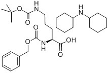 Nα-Z-Nδ-Boc-L-ornithine dicyclohexyl ammonium salt≥ 99% (HPLC);Z-L-Orn(Boc)-OH·DCHA;Z-ORN(BOC)-OH DCHA;Z-N-S-BOC-L-ORNITHINE DCHA SALT;Z-N-DELTA-BOC-L-ORNITHINE DICYCLOHEXYL AMMONIUM SALT;N-α-Z-N-δ-Boc-L-ornithine dicyclohexylamine saltN-α-Z-N-δ-Boc-L-ornithine dicyclohexylamine salt;N-.ALPHA.-CBZ-N-.DELTA.-BOC-L-ORNITHINE DICYCLOHEXYLAMINE SALT;dicyclohexylamine (S)-12,12-dimethyl-3,10-dioxo-1-phenyl-2,11-dioxa-4,9-diazatridecane-5-carboxylate |