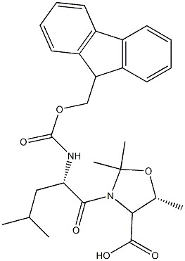 (4S,5R)-3-[(2S)-2-({[(9H-fluoren-9-yl)methoxy]carbonyl}amino)-4-methylpentanoyl]-2,2,5-trimethyl-1,3-oxazolidine-4-carboxylic acid;(4S,5R)-3-(FMOC-LEU)-2,2,5-TRIMETHYL-OXAZOLIDINE-4-CARBOXYLIC ACID;FMOC-LEU-THR(PSIME,MEPRO)-OH;Fmoc-L-Lys(Boc)-L-Cys[PSI(Dmp,H)pro]-OH;(5R)-3-[(2S)-2-[[(9H-Fluoren-9-ylmethoxy)carbonyl]amino]-4-methyl-1-oxopentyl]-2,2,5-trimethyl-4-oxazolidinecarboxylic acid;Fmoc-L-Leu-L-Thr[PSI(Me,Me)Pro]-OH;(4S,5R)-3-[N-(9-Fluorenylmethyloxycarbonyl)-L-leucinyl]-2,2,5-trimethyloxazolidine-4-carboxylic acid;Fmoc-Leu-Thr[Psi(Me,Me)Pro]-OH≥ 98.5% (HPLC) |
