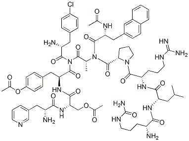 N-Acetyl-3-(2-naphthalenyl)-D-alanyl-4-chloro-D-phenylalanyl-3-(3-pyridinyl)-D-alanyl-L-seryl-L-tyrosyl-N5-(aminocarbonyl)-D-ornithyl-L-leucyl-L-arginyl-L-prolyl-D-alaninamide diacetate;Cetrorelix acetate;Cetrorenlin Acetate |