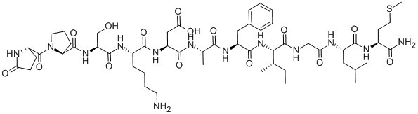 eledonepeptide;ELEDOISIN;GLP-PRO-SER-LYS-ASP-ALA-PHE-ILE-GLY-LEU-MET-NH2;5-oxo-l-prolyl-l-prolyl-l-seryl-l-lysyl-l-aspartyl-l-alanyl-l-phenylalanyl-l-isoleucylglycyl-l-leucyl-l-methioninamide;PYR-PRO-SER-LYS-ASP-ALA-PHE-ILE-GLY-LEU-MET-NH2;PYR-PSKDAFIGLM-NH2;PGLU-PRO-SER-LYS-ASP-ALA-PHE-ILE-GLY-LEU-MET-NH2;ELEDOSIN |