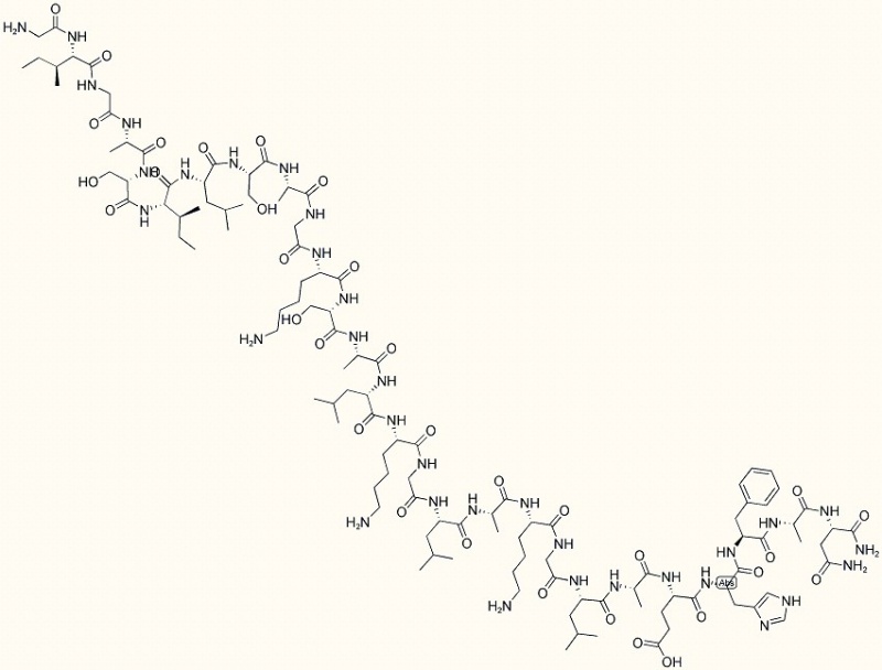 Gly-Ile-Gly-Ala-Ser-Ile-Leu-Ser-Ala-Gly-Lys-Ser-Ala-Leu-Lys-Gly-Leu-Ala-Lys-Gly-Leu-Ala-Glu-His-Phe-Ala-Asn-NH2 | H-Gly-Ile-Gly-Ala-Ser-Ile-Leu-Ser-Ala-Gly-Lys-Ser-Ala-Leu-Lys-Gly-Leu-Ala-Lys-Gly-Leu-Ala-Glu-His-Phe-Ala-Asn-NH2 |